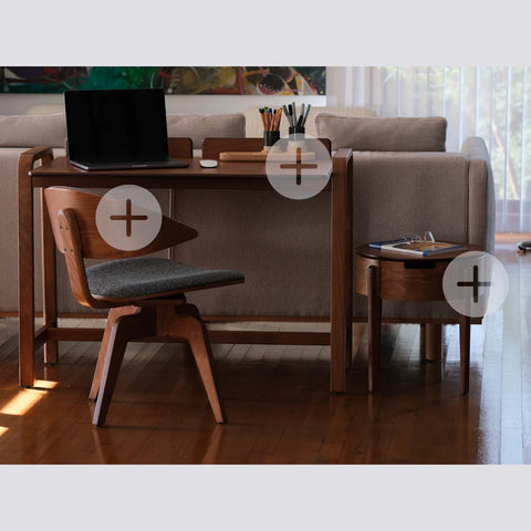 Bu Üç Parçalı Mobilya Seti, şık, düzenli ve işlevsel bir çalışma alanı yaratmak için eksiksiz bir çözümdür. Çalışma Masası, Ahşap Ayaklı Ofis Koltuğu ve Çekmeceli Sehpa kombinasyonu, hem çalışma hem de organizasyon ihtiyaçlarınıza uygun, uyumlu bir ortam sağlar.
